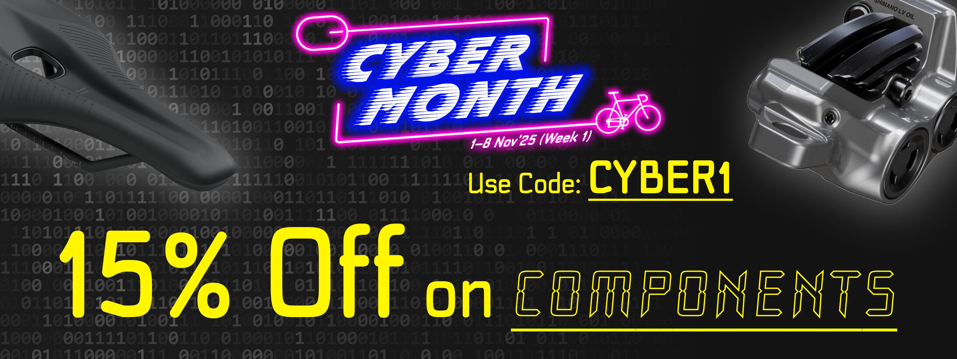 Kick off Cyber Month with a powerful start! From 1–8 November 2025, get 15% OFF all bicycle components (with min. spend of $110) — from saddles and brakes to drivetrain essentials. Whether you’re fine-tuning your performance or giving your bike a complete upgrade, now’s the perfect time to gear up.
